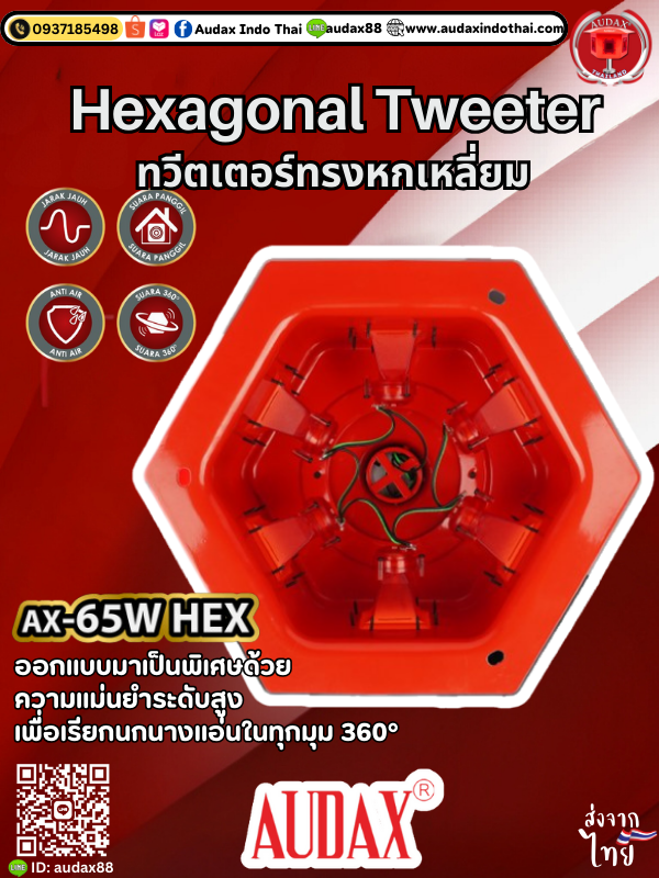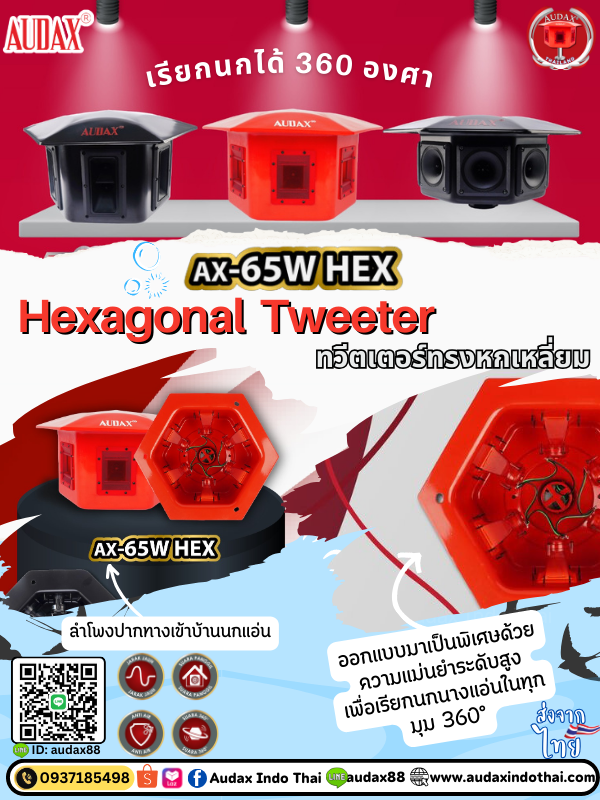 AUDAX AX-65W HEX ทวีตเตอร์ทรงหกเหลี่ยม ลำโพงปากทางเข้าบ้านนกแอ่น Hexagonal Tweeter