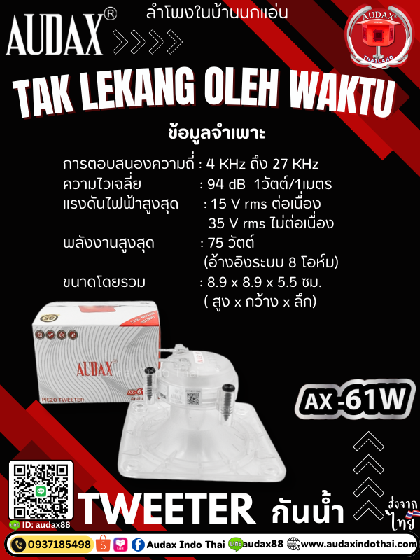 เป็นทวีตเตอร์รุ่นลิมิเต็ดจาก AUDAX การใช้ไดรเวอร์เพียโซแบบกันน้ำกับวัสดุที่คัดสรรมาอย่างดีจึงมีลักษณะเสียงที่หนักแน่นและชัดเจน